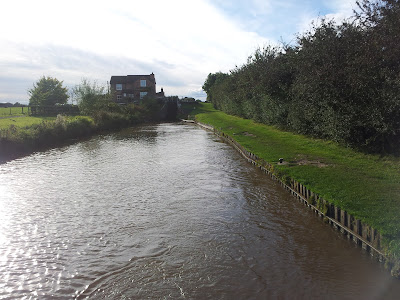 We had breakfast then set off towards Middlewich. We had miscalculated our tea bag use this week and only had one left. So we moored up above Wardle lock and went for a walk to get some. We went into the shop at Middlewich Narrowboats and bought some PG tips and some old cheddar cheese. We then carried on walking down the lock flight there. The canal is closed at the Big Lock a little further on due to a breach near Preston Brook (breach info) and an embankment problem at Croxton. Apparently it's going to cost £1.5 million to fix so all donations are gratefully received. As a consequence of the canal being shut and therefore not many boats using the locks the pounds in the Middlewich flight of three are full and overflowing. This is unusual, normally they are quite well down.